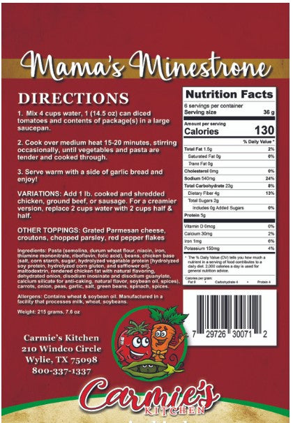 Soup Mix - Mama's MinestroneRegular price $ 7.99 USDRegular priceUnit price / per-