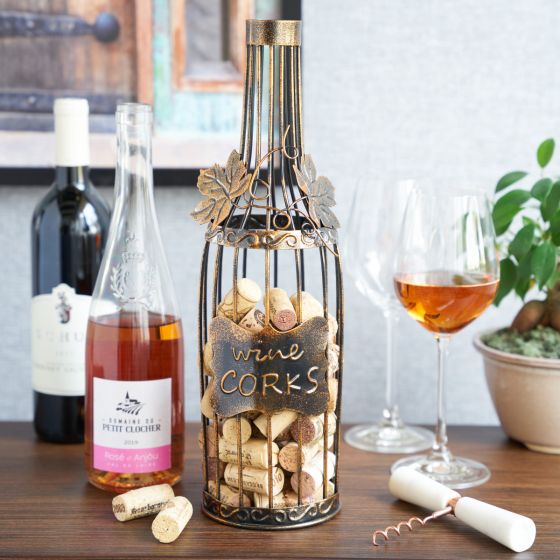 Form and function intertwine to create this metal cork holder. Its quaint wine bottle shape, bronze-tinted finish, and clever label are all sure to charm. Holds up to 60 corks to satisfy even the heartiest wine lovers.