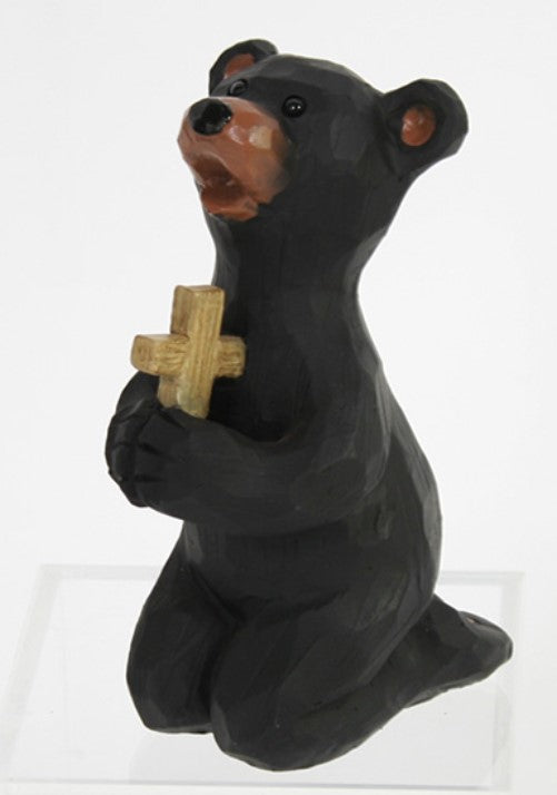 Resin Kneeling Praying bear with a cross