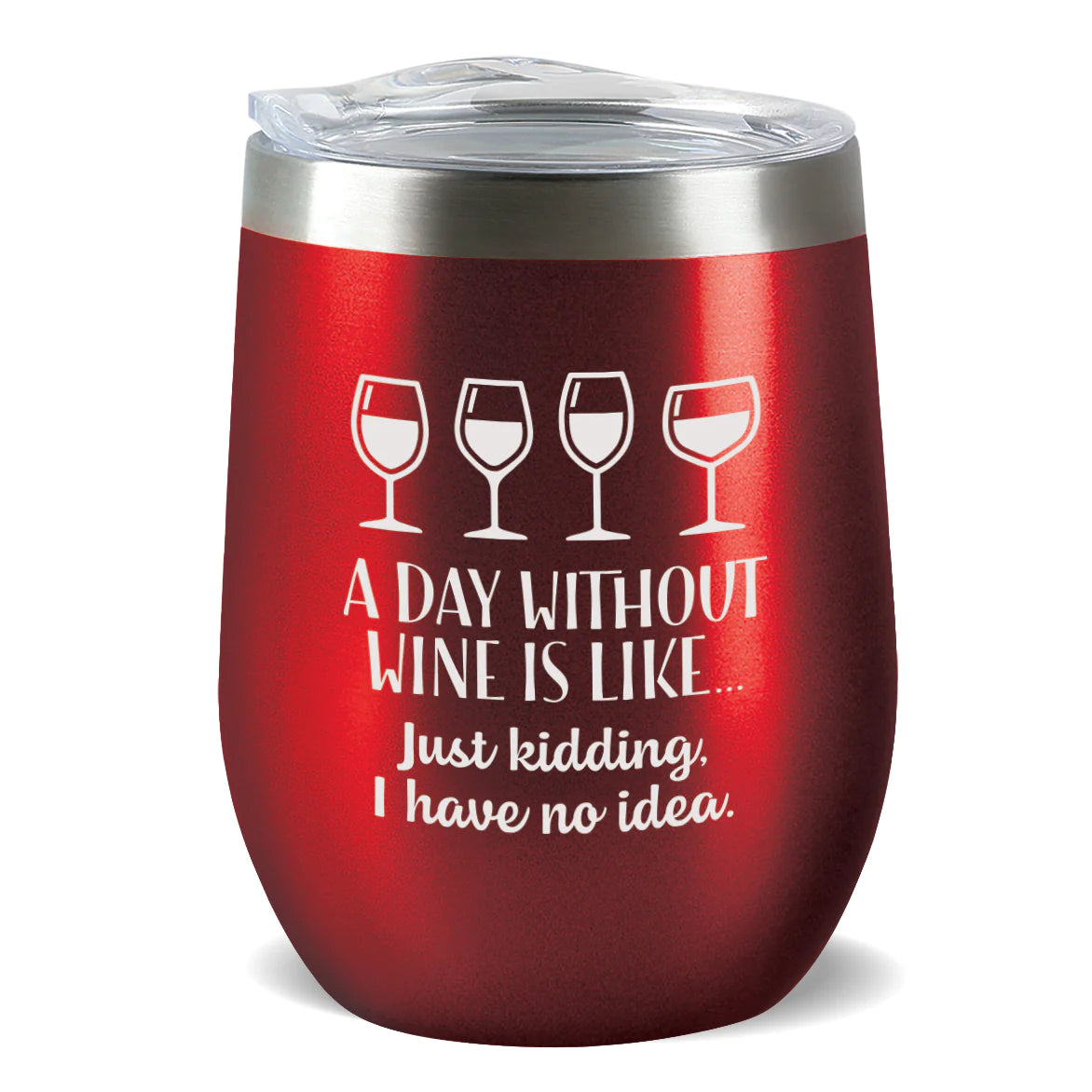 A Day Without Wine - Insulated Wine Tumbler in Candy Apple Red