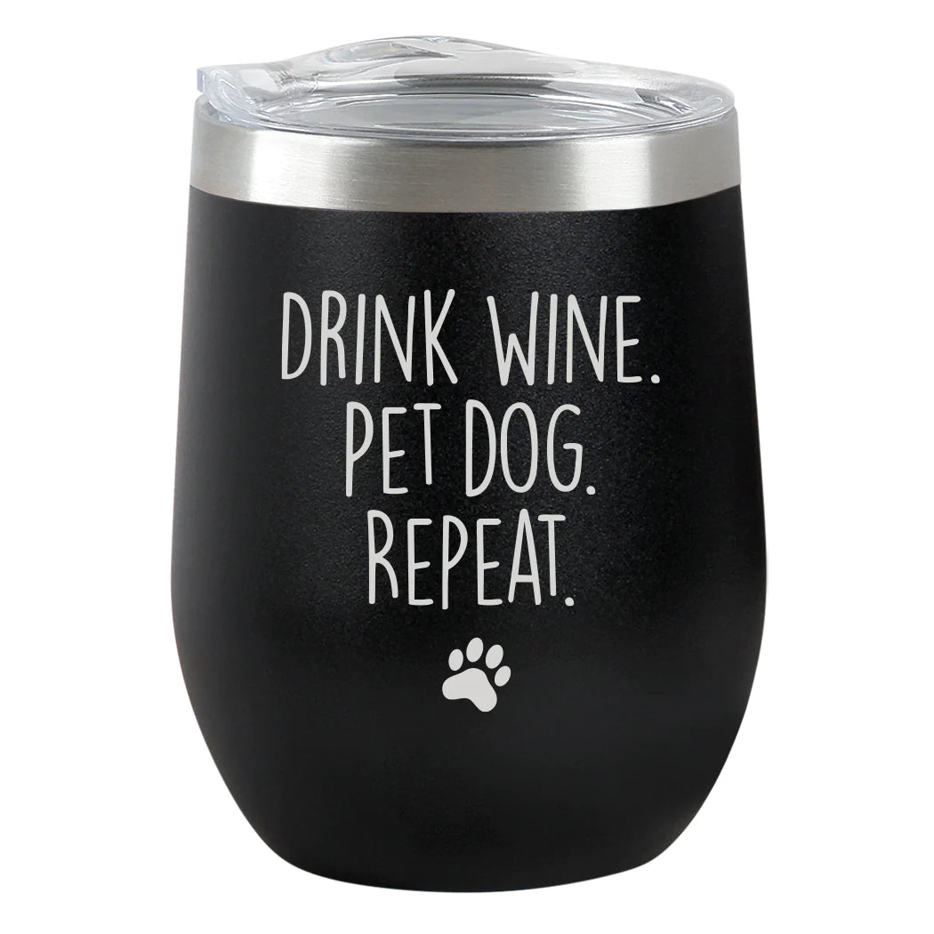 Drink Wine, Pet Dog. Repeat - Insulated Wine Tumbler - Black Matte