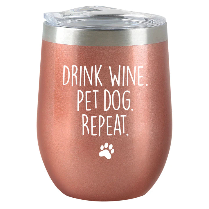 Insulated Wine Tumbler - Drink Wine, Pet Dog - Rose Gold