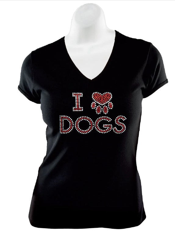 I Love Dogs Rhinestone Short Sleeve Shirt