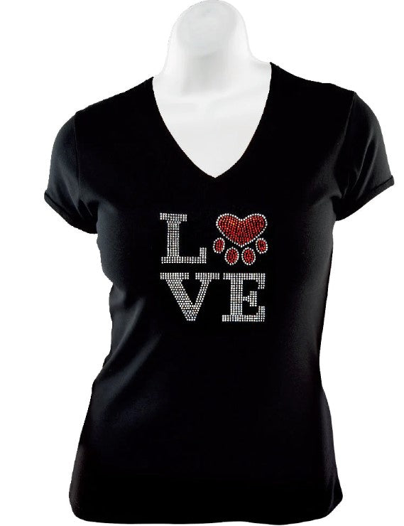 Rhinestone T-Shirt - Love (w/ Paw)