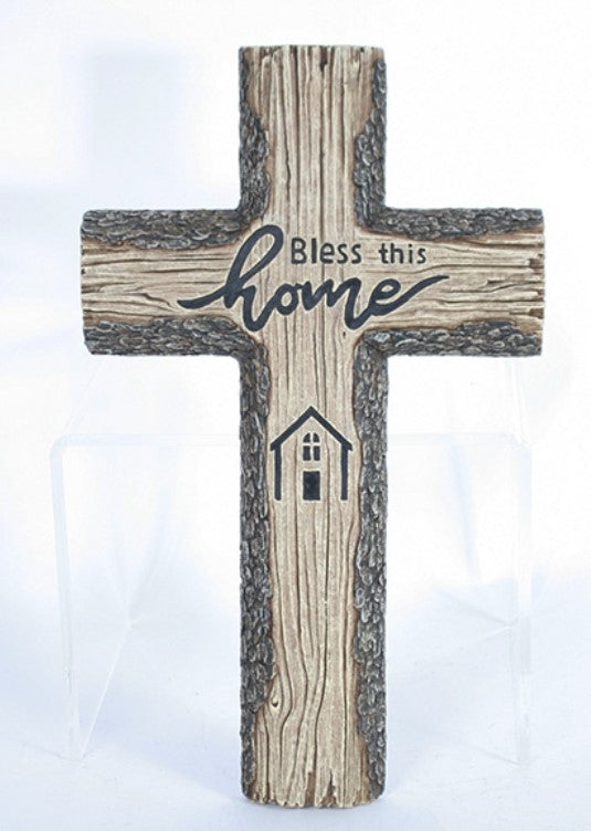 Resin Verse - BLESS THIS HOME wood look wall cross.